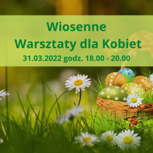 Serdecznie zapraszamy Kobiety na wiosenne WARSZTATY, które odbędą się w czwartek 31.03.2022 w godz. 18.00-20.00 1. Pod okiem florystki Jolanty Lipiec udekorujemy własnoręcznie wielkanocne koszyki, które ozdobią nasze świąteczne stoły. Porozmawiamy również o…